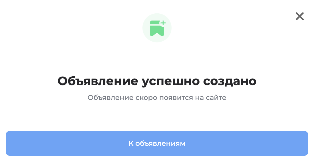 Поздравляем, теперь ваше объявление размещено в каталоге!