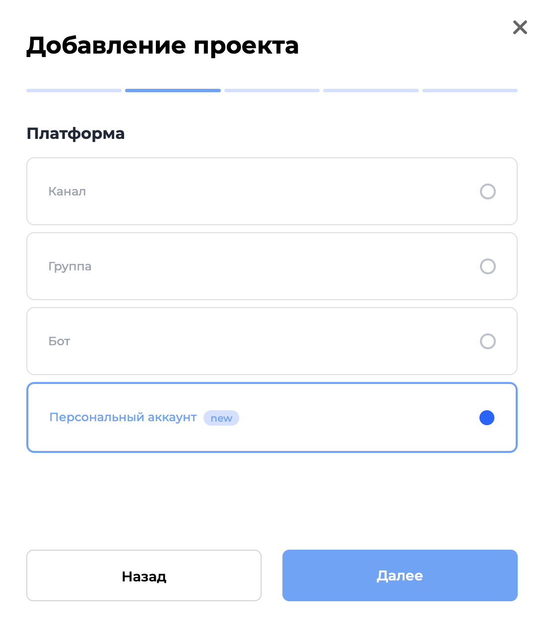 В разделе выбора платформы выберите "Персональный аккаунт"