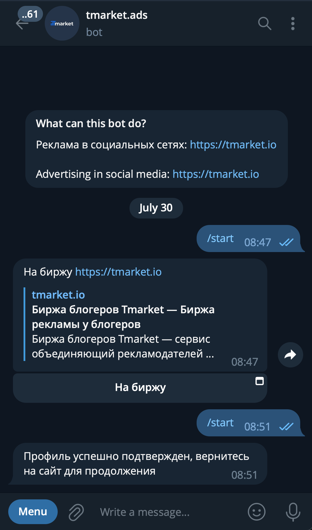 Если вы хотите продавать рекламу в Telegram stories, прежде всего вам необходимо зарегестрировать ваш аккаунт на бирже.